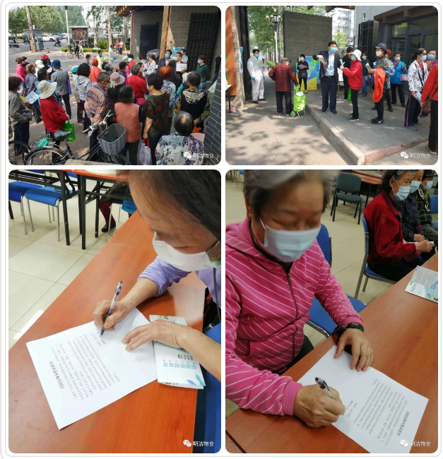 明洁物业作为专业的物业管理公司,领导以及员工高度重视本垃圾分类政策,积极响应并将政策落实到最实处。公司办公室大力支持各管理处的垃圾分类工作,及时采购制作的宣传条幅和垃圾分类图标准确、迅速、到位。为各管理处工作的顺利实施做好保障。