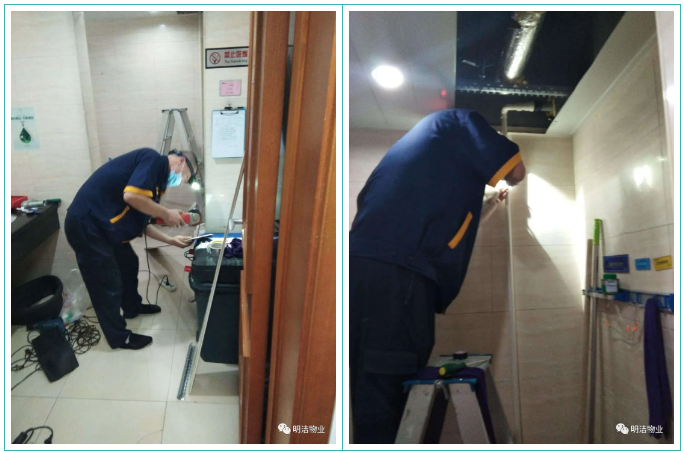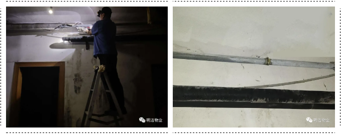这是明洁物业海关缉私局项目管理处利用六日时间改造空调冷凝水管。周末是闲暇的周末,周末是忙碌的周末。他们尽职尽责,任劳任怨。无论刮风下雨还是烈日炎炎,哪里有需要,哪里就会有他们忙碌的身影。