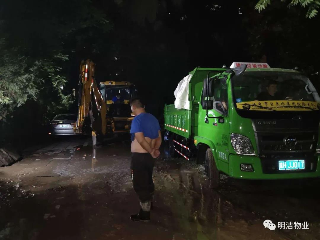 8月5日晚9点30分左右,华威北里自来水管破裂,明洁物业华威北里项目管理处立即联系自来水公司维修并迅速组织抢修人员抵达施工现场,拉上警戒线,由于流水量较大,维修人员果断关闭供水阀门,开始开挖漏水处,查看供水管道破损情况,确定维修方案进行维修。