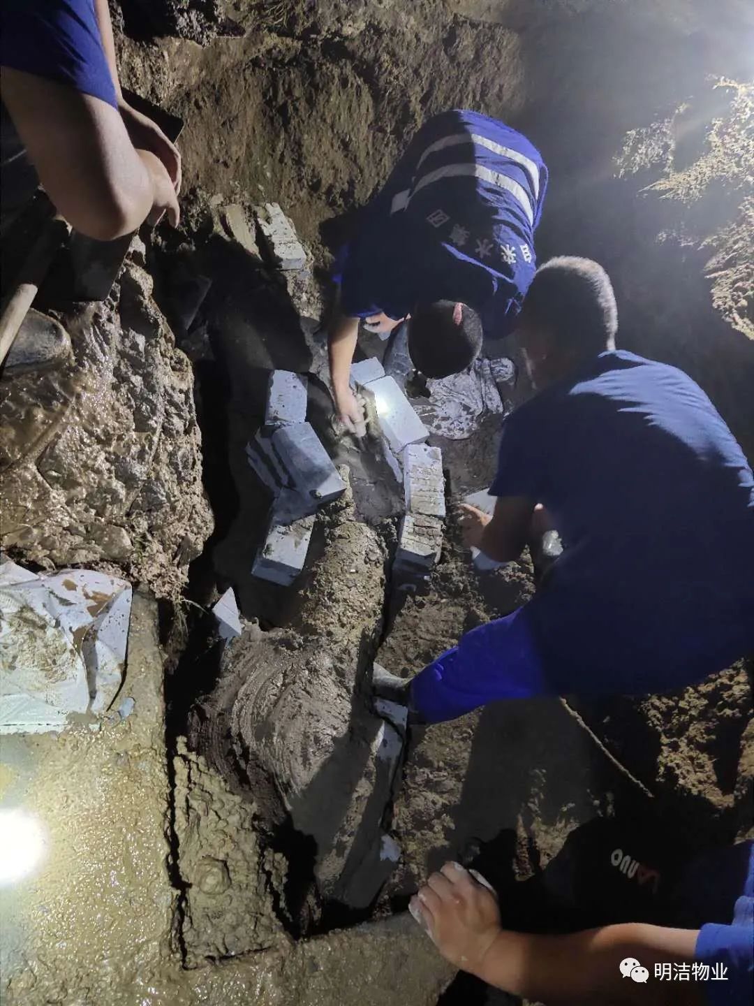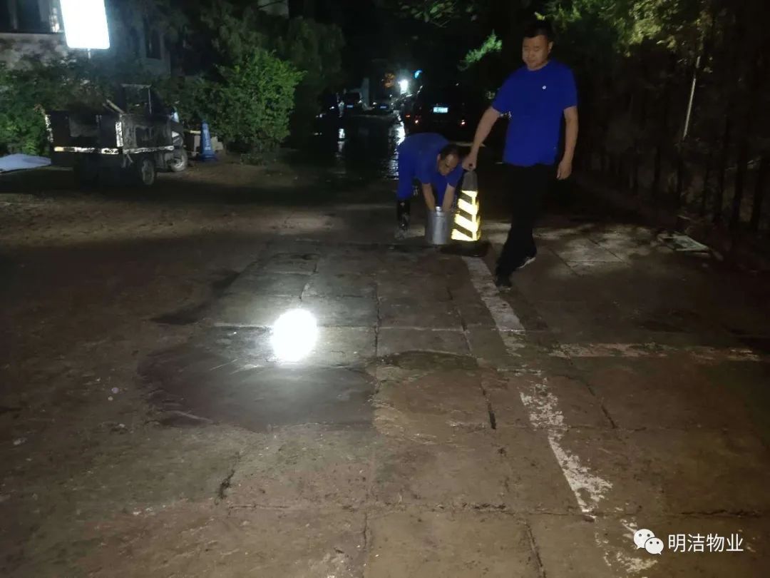 历经6个多小时的作业后,维修师傅们已经非常乏力,同时,维修师傅们修了多久,我们物业管理处的人员就一起陪伴多久。疏导车辆、维护现处、配合帮助等。但想到近千名住户没有水,大家心里非常着急,必须尽快修好管道,经过艰辛工作,终于在凌晨4点恢复了正常用水。