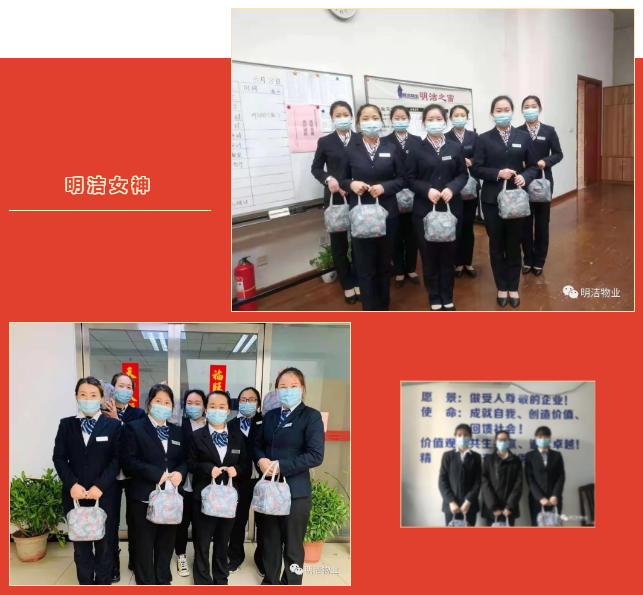 无论是兰心蕙质的女客服,还是兢兢业业的女保洁,以及尽忠职守的女保安,还有一丝不苟的女内勤,包括精益求精的女维保……可以说,物业女性撑起了中国物业行业的半壁江山!在这里我们要向同是撑起明洁物业公司半边天的女神们说一声,你们辛苦啦~节日快乐,愿青春永驻,岁月无忧!
