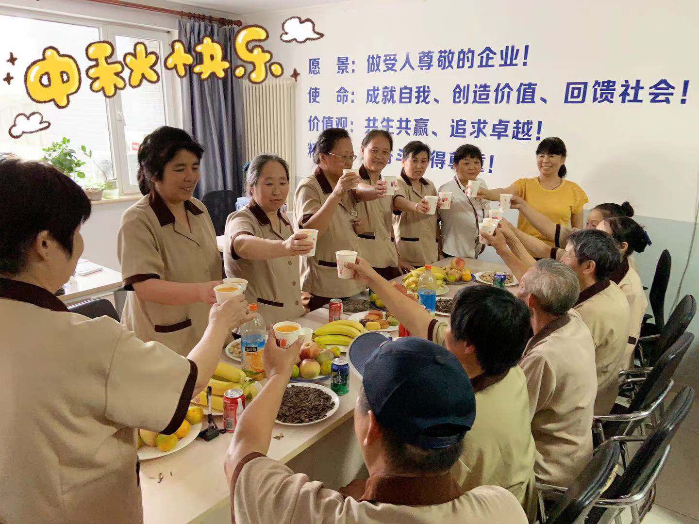 保洁部大家伙举杯庆活动,主管带头给大家送上佳节祝福。