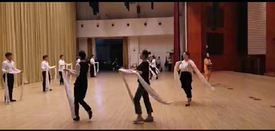 正所谓“台上一分钟,台下十年功”。公司领导和管理处演职人员在坚守工作之余积极的投入到节目排练中,为了达到演出效果,让动作优美流畅,演员们每个动作都要反复推敲,握紧的拳头带动着直挺的脊梁,双臂抡绸,翻转跳跃一遍遍的排练着,齐心协力为了这次演出成功,向祖国表达自己的心意和祝福。